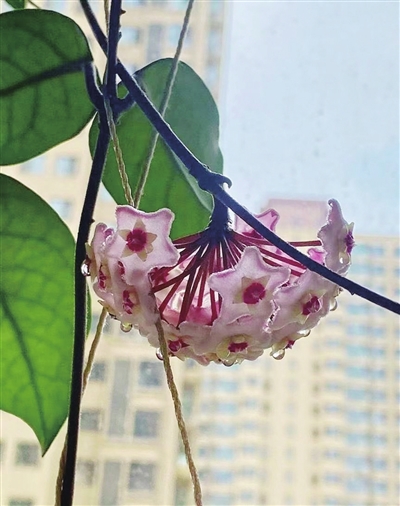 前几天,我家第三波球兰又绽放了。这丛多年生攀爬草本植物来家里落户数年,今年是第二年开花。每日清晨,总忍不住留意花色鲜艳、形状奇特的球兰花的生长。从饱满的花苞慢慢舒展成五角星簇拥的花团,暗调的花瓣晕染出绚丽的粉色,每一点微小的变化都藏着欣喜。我悄悄盼着,或许还有更多惊喜。