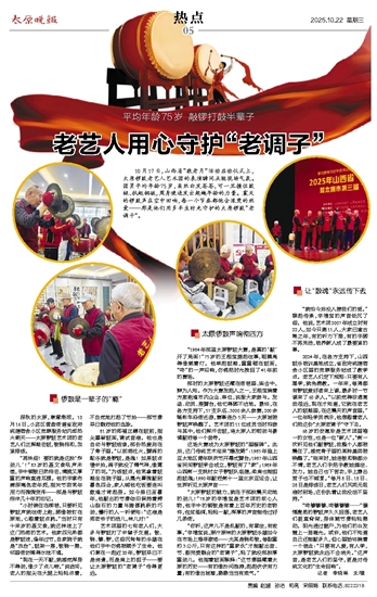 艺术团里的七旬老人们,大多与锣鼓打了半辈子交道。钹、铙、镲、锣,这些沉甸甸的乐器在他们手中仿佛被赋予了生命。他们聚在一起近20年,锣鼓早已不是消遣,而是肩上的担子——要让太原锣鼓的“老调子”传得更远。