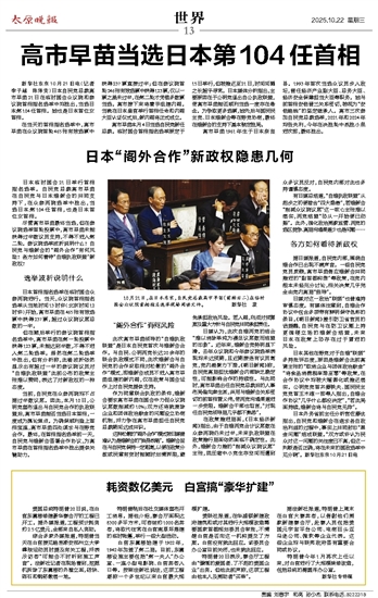 但在随后举行的参议院首相指名选举中,高市早苗在第一轮投票中获得123票,未能达到半数,不得不进入第二轮选举。虽然在第二轮选举中胜出,但有分析称,此番波折依然显示出有超过一半的参议院议员对“自维执政联盟”此前公布的政策主张难以赞同,表达了对新政权的一种态度。