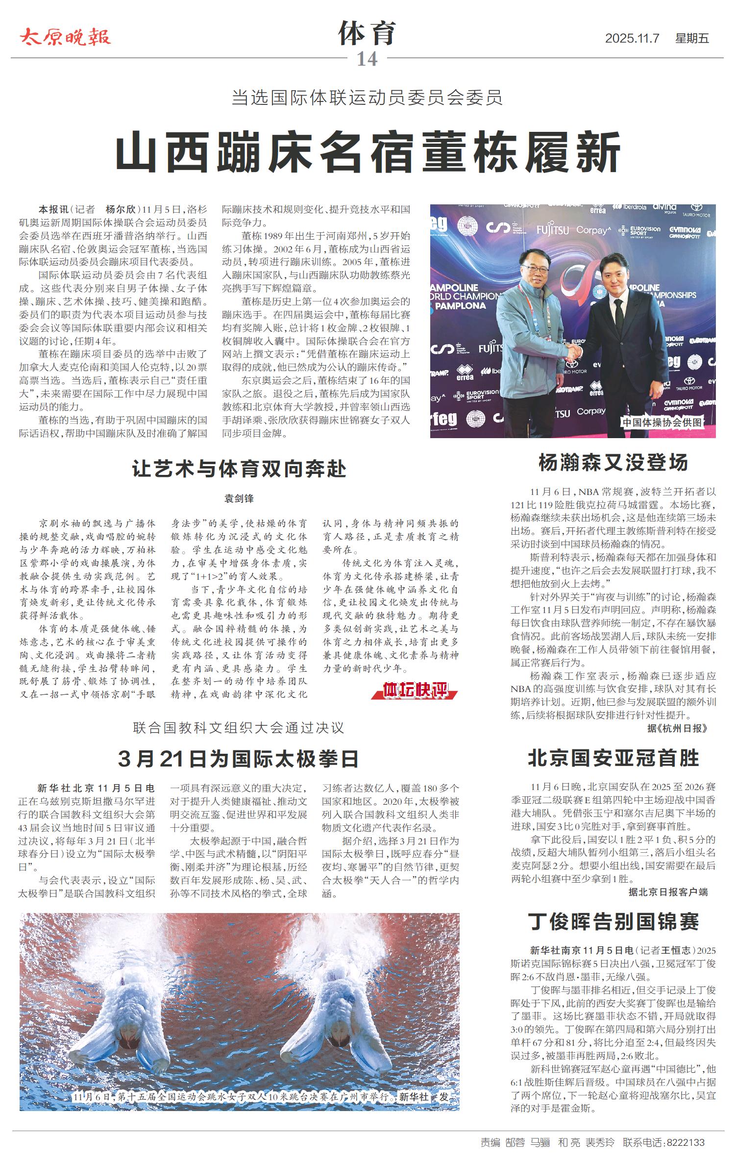 山西蹦床名宿董栋履新
