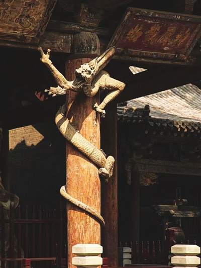 晋祠圣母殿前的木雕盘龙(资料图)
