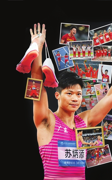 2015年,苏炳添在钻石联赛美国尤金站中跑出9秒99,成为首位突破10秒大关的中国人。2018年,苏炳添在世界挑战赛马德里站百米决赛中跑出9秒91,追平亚洲纪录。2021年举行的东京奥运会上,苏炳添在半决赛上跑出9秒83,打破亚洲纪录。今年11月20日,苏炳添在十五运会的男子4X100米接力决赛中,跑完了自己运动员生涯的最后100米,他和广东队的队友获得第四名。