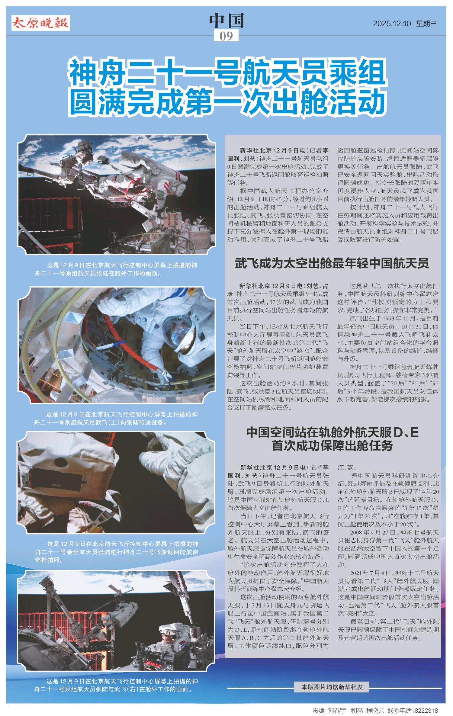 神舟二十一号航天员乘组圆满完成第一次出舱活动