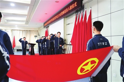 新团员面向团旗庄严宣誓