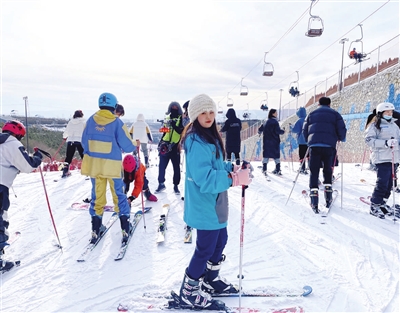 市民在采薇庄园滑雪场享受冰雪乐趣