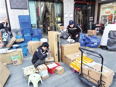 12月14日,太原某小区楼下,快递工作人员正熟练地分拣各类包裹。随着各大电商“双十二”促销活动的开展,辖区内快递投递量显著攀升。 邓寅明 摄