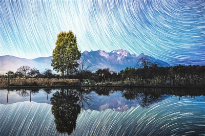 12月13日凌晨在云南省丽江市白沙镇拍摄的星空(堆栈照片)。