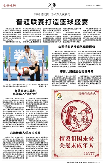 本报讯(记者 于健)12月16日至17日,太原市第八届残疾人运动会将在滨河体育中心拉开帷幕。本届赛事由市残联、市体育局联合主办,滨河体育中心承办,届时9支代表队、360人次残疾运动员将角逐12个比赛项目。