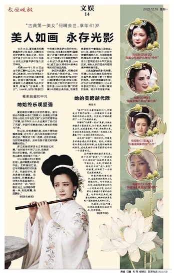 2016年播出的《女医明妃传》,是何晴最后的影视作品。王明强回忆说,这与何晴患病的时间差不多。先是动手术,然后是漫长的康复。在此期间,何晴都是以非常乐观和坚强的心态面对这一切。“她还跟我说过,她想跟李雪健一样,战胜病魔,走回舞台。”