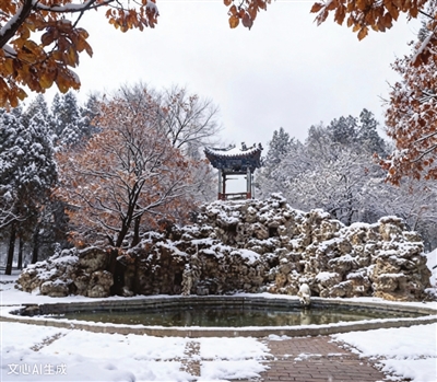 游览伏龙山要从伏龙园的整体氛围来品味。因为伏龙园的景致围绕伏龙山展开。山的西面、北面是牡丹园,每当牡丹花开,花卉将伏龙山半包围起来,形成山花烂漫的景致;山的东面、南面是溪流,溪水缓缓流过,在山前聚积成池塘,水系将伏龙山也半包围起来,形成山水呼应的情境。一座伏龙山,可谓“半山流水半山花”,将晋祠园林的精彩演绎到了极致。