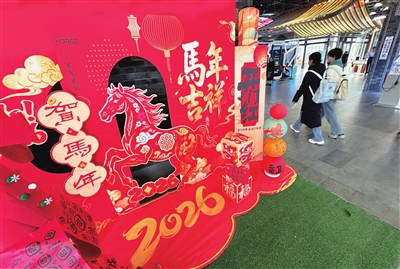 2026年的脚步渐近,省城节日氛围逐渐浓厚。12月23日,吾悦广场内,商家设置新年景观吸引消费者。
