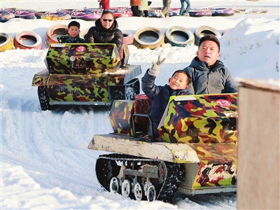 亲子共驾雪上小坦克。 (图片由康培稻田公园提供)