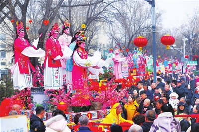 3月3日,晋源区姚村镇西邵村举行元宵节民俗巡演活动。 王韵菲 摄
