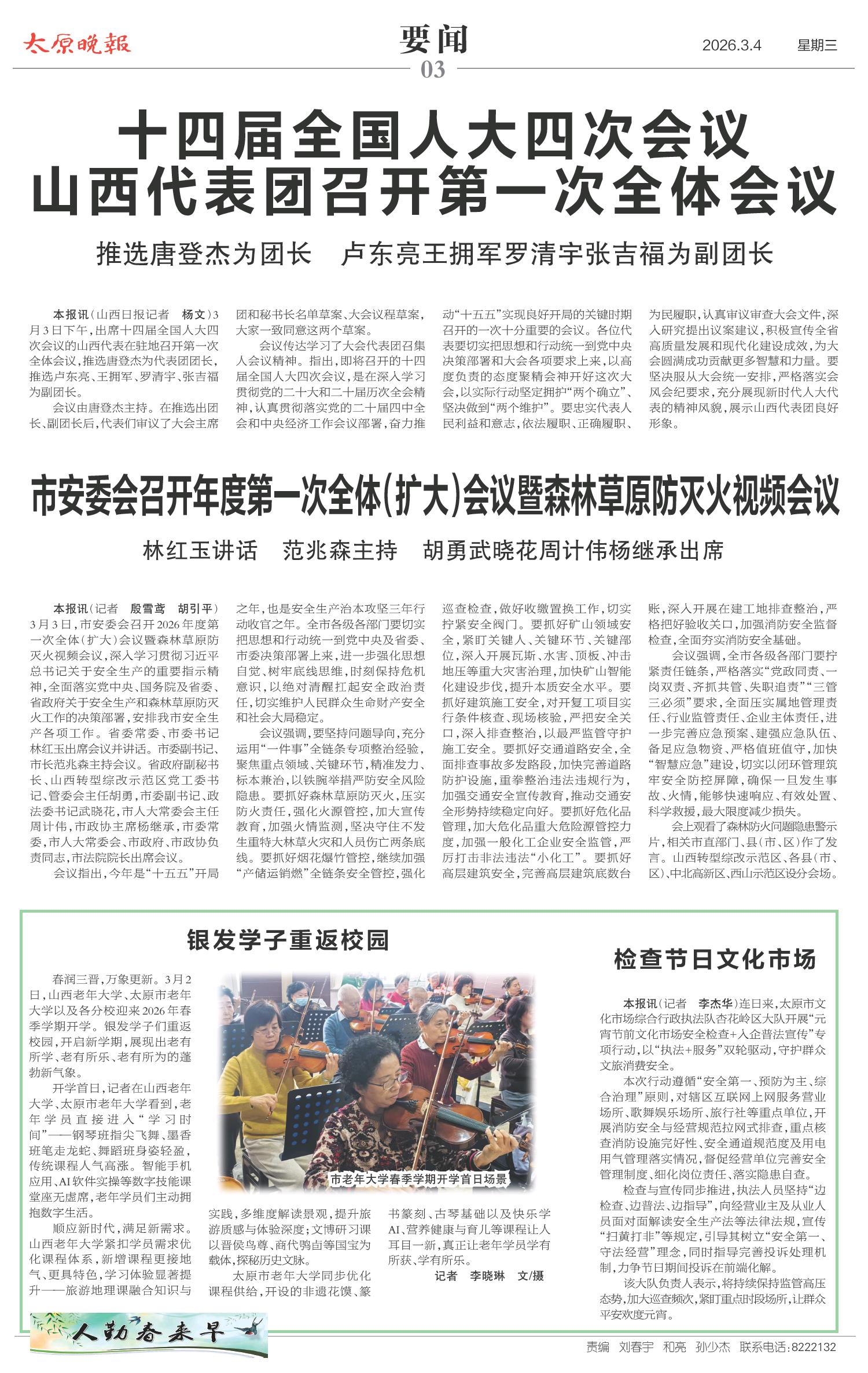 十四届全国人大四次会议山西代表团召开第一次全体会议