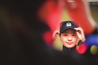 民警赵宇童正在规范着装
