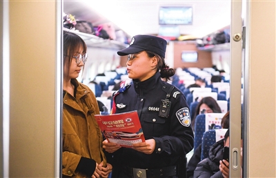 民警毛新宇向旅客宣传安全知识