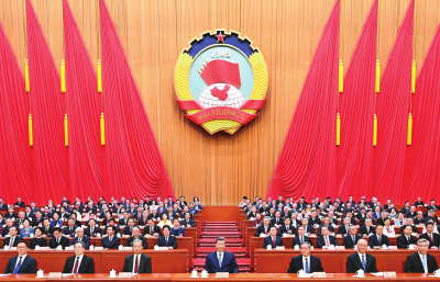 三月的北京,春启华章。人民大会堂大礼堂灯光璀璨,气氛隆重热烈。中国人民政治协商会议会徽悬挂在主席台正中,十面鲜艳的红旗分列两侧。
