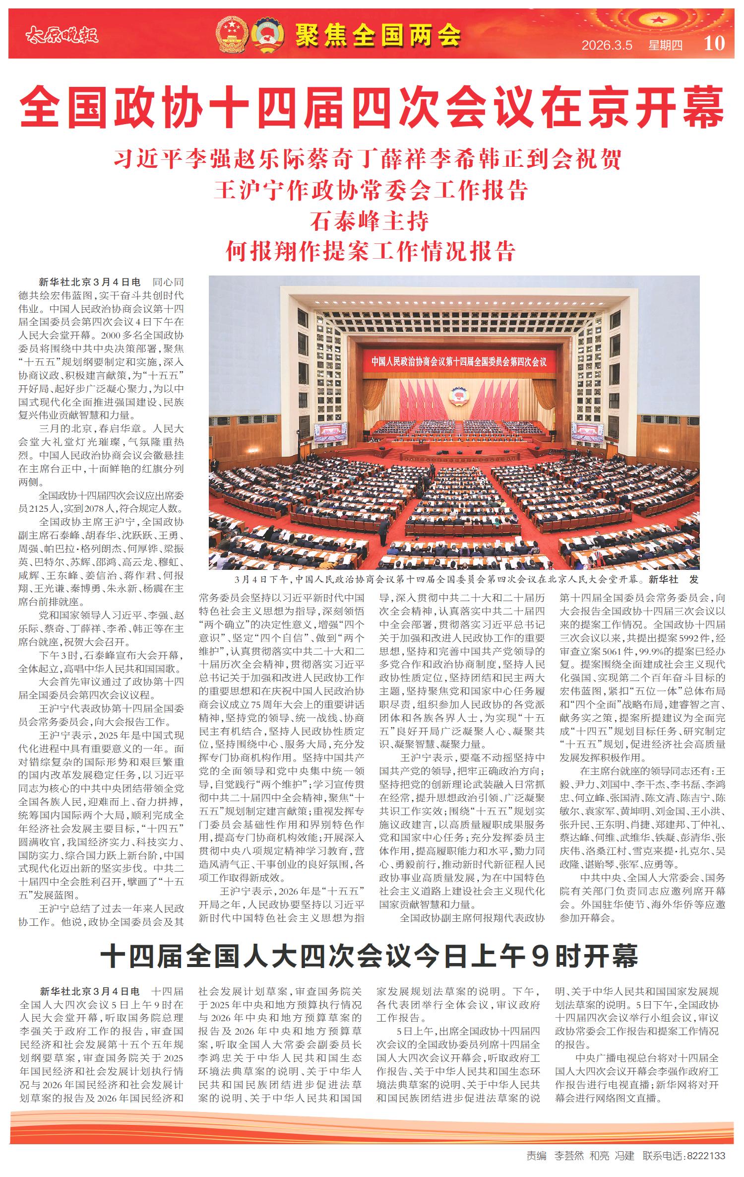 全国政协十四届四次会议在京开幕