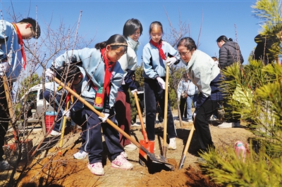 3月11日,迎泽区桃南小学联合老军营街道桃园南路一社区在阳曲县北山植树基地开展“少年劳动植希望”植树节主题活动,增强学生植绿、爱绿、护绿的理念,引导学生积极参加生态建设。