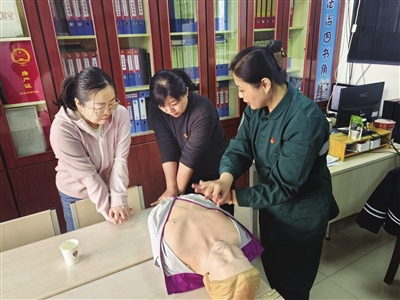 本报讯(记者 刘涛 文/摄)3月6日,市急救中心急救人员深入鼓楼街道东缉虎营社区,开展“急救知识进社区,守护健康伴同行”应急救护普及培训活动,旨在普及急救技能,特别是提升女性居民及家庭的应急自救互救能力。“大家记住,黄金4分钟,时间就是生命!”在社区活动室内,市急救中心科教科的邢渊主任正在授课。此次培训紧扣女性日常防护、家庭老人照护、儿童意外处理等高频生活场景,采用“案例导入+原理拆解+标准演示”的创新模式,通过还原真实的院前急救案例,用通俗易懂的语言拆解专业术语,让现场的居民快速建立急救知识框架。课程内容涵盖心肺复苏(CPR)基本操作流程、AED(自动体外除颤仪)傻瓜式操作指南以及气道异物梗阻急救法等基础急救技术。