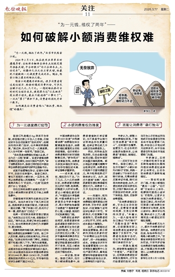 “消费金额无论大小,都关乎消费者的切身利益。消费者的正当权益,恰恰体现在这一笔笔小额消费之中。”安徽省消保委投诉部主任孙初说,只有守护好每位消费者的每笔消费权益,才能真正筑牢消费信心,让消费者敢消费、愿消费。