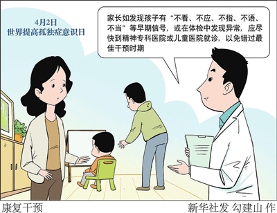 首都医科大学附属北京安定医院儿童青少年精神科主任医师陈旭提示,家长如发现孩子有“不看、不应、不指、不语、不当”等早期信号,或在体检中发现异常,应尽快到精神专科医院或儿童医院就诊,以免错过最佳干预时期。
