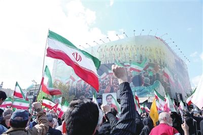 4月1日,在伊朗首都德黑兰革命广场,民众参加为伊朗伊斯兰革命卫队海军司令坦格西里、伊朗武装部队总参谋长顾问贾姆希德·埃哈基及伊朗武装部队军事人员举行的告别仪式。 新华社发
