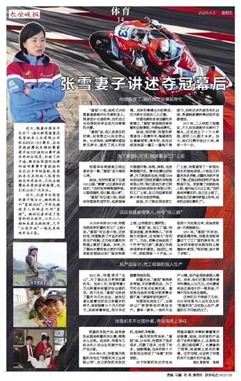 近日,随着法国车手瓦伦丁·德比斯驾驶重庆张雪机车工业有限公司的820RR-RS赛车,在世界超级摩托车锦标赛葡萄牙站SSP组别比赛中连夺两回合冠军,打破了杜卡迪、雅马哈等国际品牌对该项赛事中量级组别长达30多年的垄断,张雪机车及其创始人张雪的励志传奇经历,不仅点燃摩托车爱好者的激情,也引发公众广泛关注。近日,记者专访张雪的妻子陈女士,她的网名叫“星姐0543”,平时也被很多人和网友叫作“星姐”。她向记者讲述了张雪的创业经历,以及二人相知成家互相扶持,几乎“从零开始”一路走来的艰辛与不易。