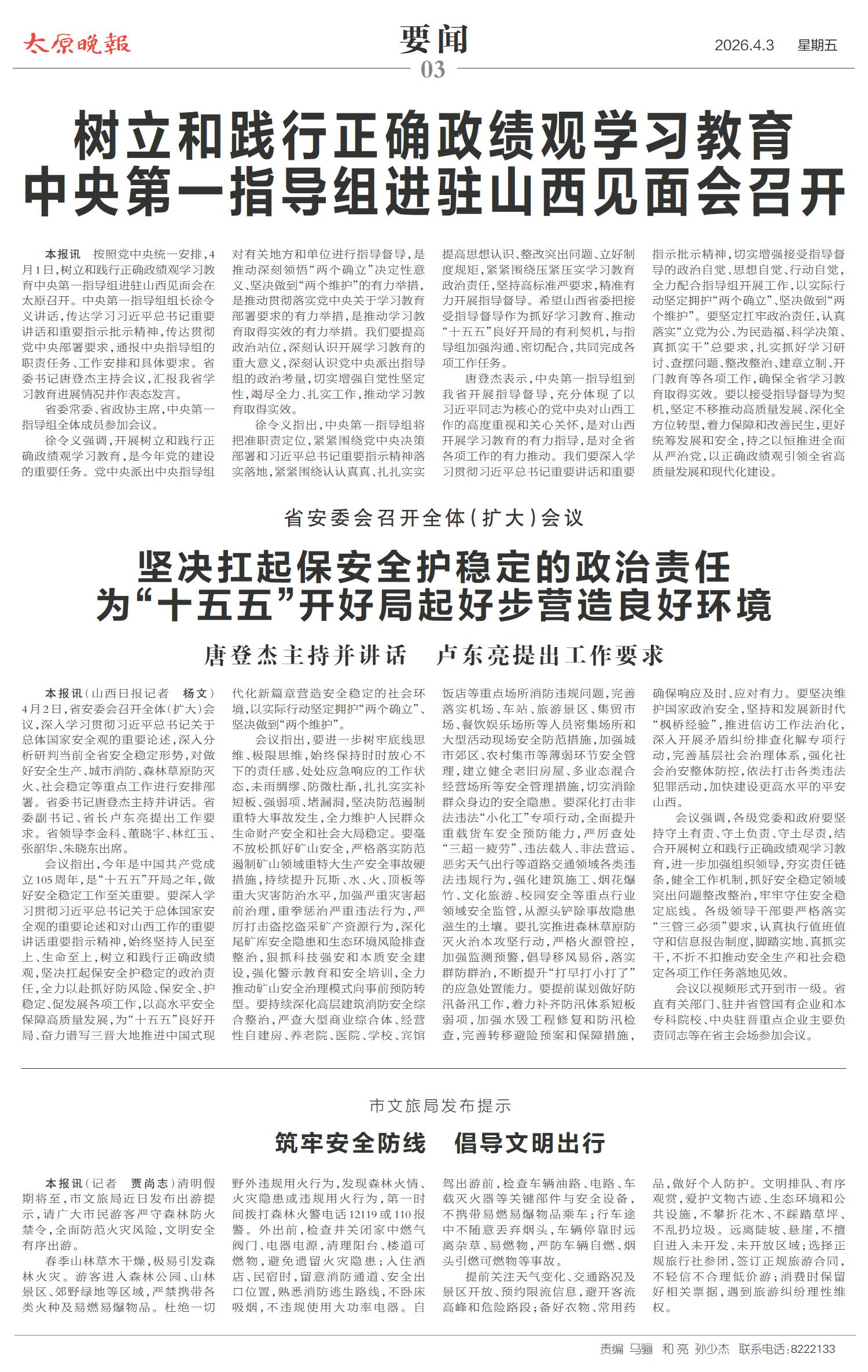 树立和践行正确政绩观学习教育中央第一指导组进驻山西见面会召开