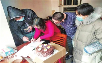 看到海东社区低保员和民政局的工作人员,马征的母亲非常激动,连忙说:“快进来,屋里坐,外面太冷!”进入屋内,大家了解了马征的近况,打开生日蛋糕,唱响生日快乐歌,一起祝他生日快乐。尽管有智力残疾,但马征依然感受到了人们的浓浓祝福,脸上洋溢着幸福的微笑。
