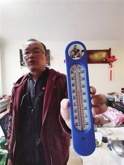 1月9日中午,在王振宏家中,记者看到,温度表显示,室内温度已达到23℃,穿着棉衣会感到有些热。