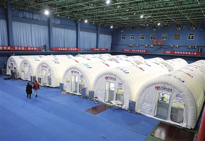 当日,日检测通量10万单管的“火眼”实验室(气膜版)经过连夜建设,在石家庄市河北体育馆网球馆亮相。目前,工作人员正在加紧安装调试设备,投入运行后每日最高可检测核酸样本量100万人份。新华社 发