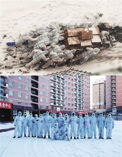 “当时雪真大,我们穿着防护服、戴着护目镜,眼睛睁开了也看不清路。脚下还打滑,就是摸索着跟着感觉走。有人滑倒了,爬起来大家搀扶着继续向前走。”王海鹏回忆说。