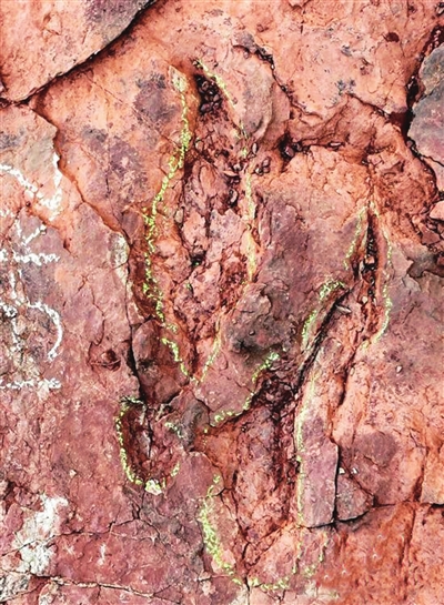 邢立达说,恐龙足迹是自己的分类系统,不同大类的恐龙,其足部骨骼结构有着很大的差异,这些独有的特征会反映到脚印的形状上,因此我们可以由此判断造迹恐龙是肉食性还是植食性。