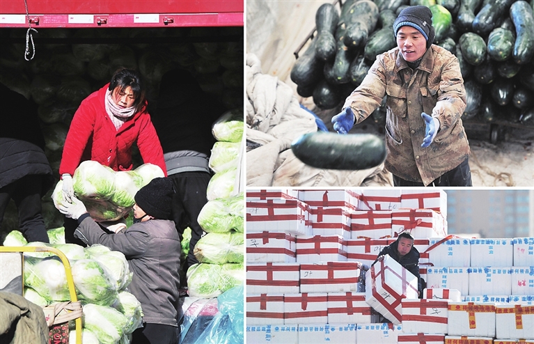 1月13日,河西农副产品市场内,商户正在搬运蔬菜。在当前疫情防控形势下,我市各批发市场加强协调货源供需渠道,以保障农产品货源充足,满足群众的日常需求。 邓寅明 摄