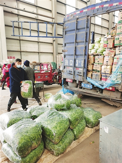 丈子头农产品物流园综合部负责人汪俊介绍,为做好疫情防控,园区明确责任分工,要求所有进场人员登记并佩戴口罩,对市场交易区、办公区实施全方位清扫消毒。该物流园还积极完成保障供应和储备任务,动员组织商户与产地对接,紧急从山东、内蒙古等地调运白菜、土豆、萝卜、面粉等农产品,已储备2000余吨。这两天,蔬菜日进场量为600至800吨、水果日进场量为300至400吨、副食粮油和冷冻品进场量为300至500吨,有力保障全市人民的生活供给所需。