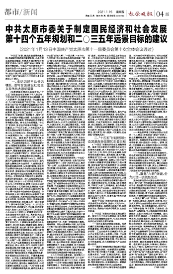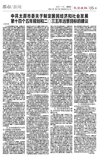 中共太原市委关于制定国民经济和社会发展 第十四个五年规划和二〇三五年远景目标的建议