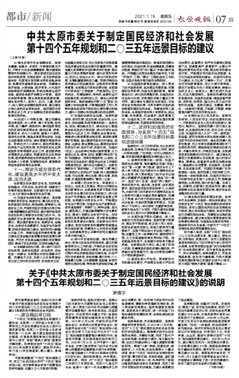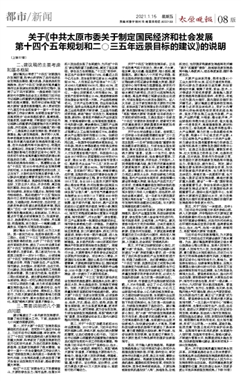 关于《中共太原市委关于制定国民经济和社会发展 第十四个五年规划和二〇三五年远景目标的建议》的说明