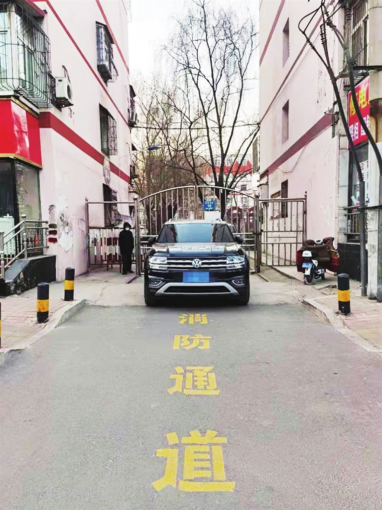 这是记者1月16日在永乐北街一小区拍到的图片。地面上“消防通道”四个大字非常醒目,使得消防通道内停放的这辆汽车更加扎眼。众所周知,消防通道就是生命通道,禁止占用,这辆车如此停放,实在欠妥,涉嫌违法。