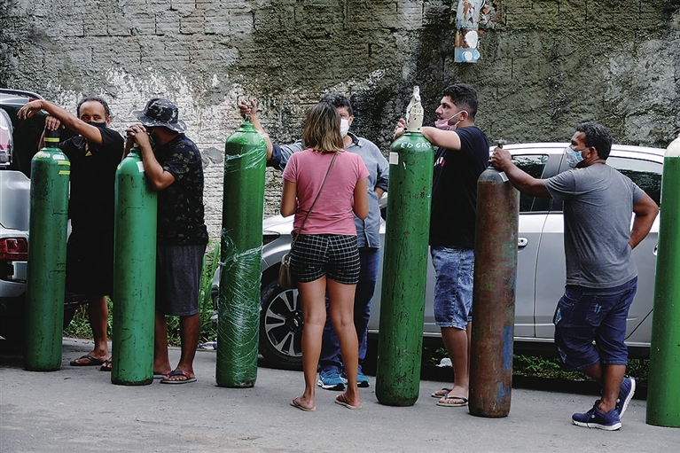亚马孙州是巴西面积最大的州,位于巴西西北部,位置偏远。这个州受第二波新冠疫情重创,医院不堪重负,一些医院氧气储备已经用光。媒体先前报道,亚马孙州不少医生用私家车运送患者至其他地区,许多当地人在黑市求购罐装氧气。一些医生不得不让入院患者轮流吸氧。