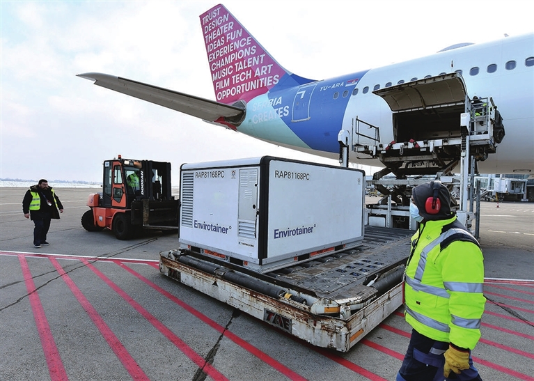 武契奇在迎接仪式上说,这批疫苗是塞中两国“伟大友谊的证明”,将为50万人提供保护。陈波表示,中国是首个承诺把新冠疫苗作为全球公共产品的国家。中国国药集团生产的新冠疫苗附条件上市仅16天,首批疫苗就已经运抵塞尔维亚,表明中塞两国正携手抗击新冠病毒。她说:“我相信,中国疫苗将为塞尔维亚抗击新冠疫情作出贡献。”