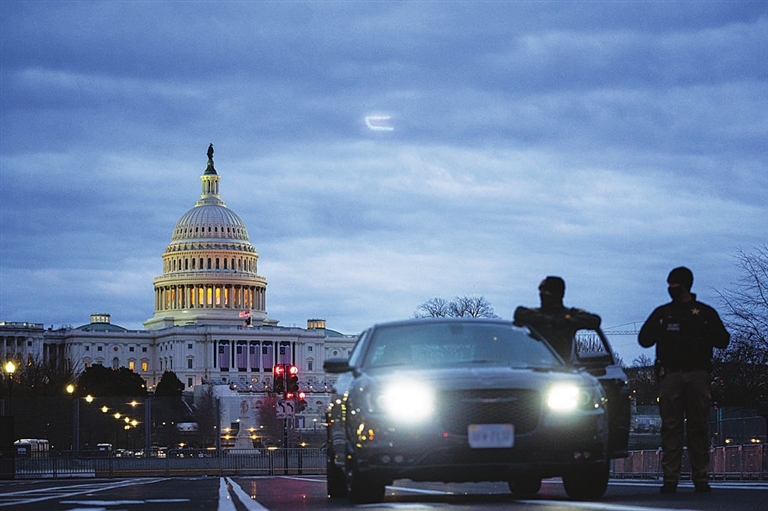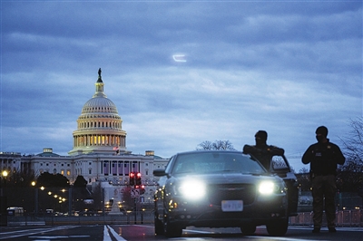 路透社报道,美国首都华盛顿市区17日如同“鬼城”。国民警卫队队员荷枪实弹,在遍布市中心的检查点值勤,大量装甲车等军用车辆停在路中央,阻断交通。路透社评论:“华盛顿俨然成为一座堡垒的画面,动摇了美国人对权力和平交接传统的自豪感。”