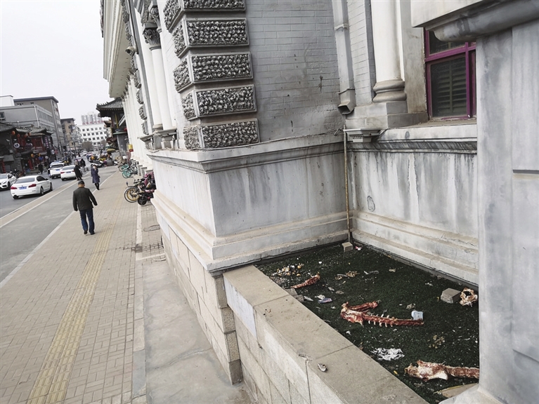 当日下午,记者再次去到现场,看到之前在山西省银行旧址门口左右两侧的窗台下的动物骨头、蛋壳、塑料袋等垃圾已得到清理,恢复干净整洁。随后,记者从12345便民服务热线了解到,垃圾为杏花岭区环卫部门清理。