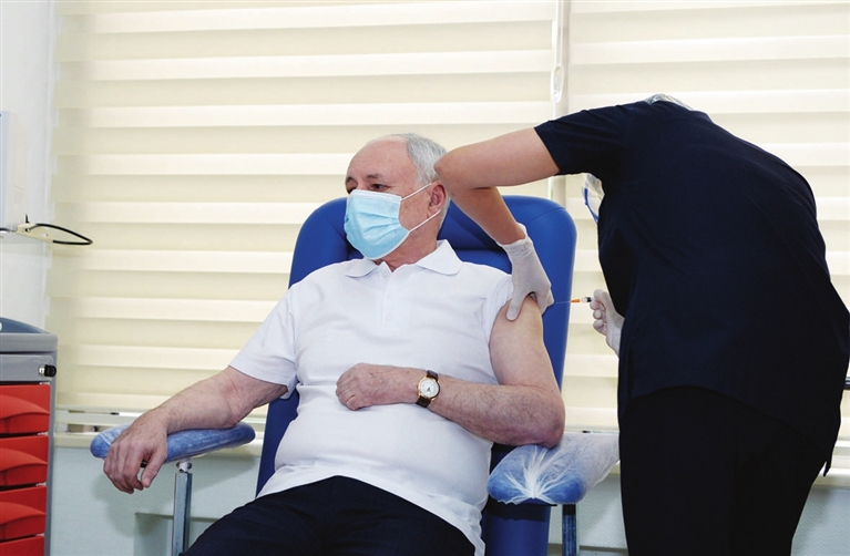 阿塞拜疆18日正式启动第一阶段新冠疫苗接种工作,阿卫生部长奥格塔伊·希莱里耶夫在首都巴库率先接种了中国科兴公司的新冠疫苗克尔来福。他在接种疫苗时说,经过综合比较,阿塞拜疆选择引进中国疫苗。“阿专家们认为中国疫苗是最好的,它在很多国家都通过了临床试验。”阿塞拜疆目前共订购了400万剂该款疫苗,它们将被分批交付阿方。