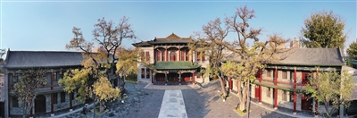 上图为渊谊堂,民国时称一楼,原为山西巡抚衙门大堂,1932年拆除重建为二层砖木混合建筑。左下图为仪门南侧庭院。右下图为御书楼南侧庭院。 全媒体记者 宿晓健 摄
