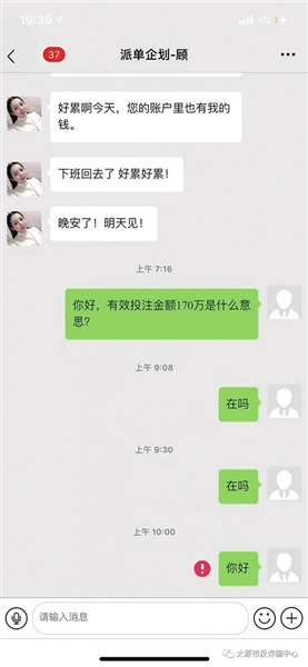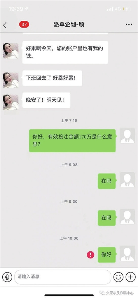 1月15日,在我市某银行工作的李女士收到一位自称是“某快递公司工作人员”的微信好友申请,添加了好友之后,这名“快递员”将她拉入一个陌生群聊。看到群里发的“兼职刷单日赚百元”等字眼,李女士有些心动。在群里“导师”的“建议”下,她下载了“富聊”APP和“南方”博彩网站。很快,“富聊”APP中的派单员便向李女士发送打款通道,待她向指定银行账户转账后,派单员又给她发送专门的“包赔协议”,宣称稳赚包赔。吃下“定心丸”的李女士,随即被所谓的“首席导师”拉入一个做单群。“首席导师”发布任务,她立即小试牛刀,只投入300元,便赚了60元。连续几笔小额投注都成功盈利,而且投注结果和盈利金额在“南方”博彩网站上全部可以看到,也能顺利提现,李女士由此对“导师”深信不疑,开始加大投注金额。不料,充值金额提高了,派单员却借口她的操作有误,仍然让她继续充值。李女士连续充值240万元后,才发现再也无法提现。与对方联系时,发现已被诈骗分子拉黑。