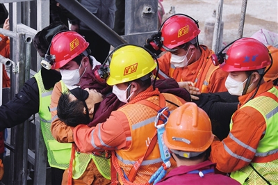 在作业过程中,救援人员在井下“四中段”新发现一名身体极度虚弱的被困人员,并于11时13分将他救回井上,送往医院。