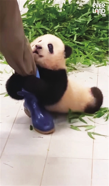 据韩联社24日报道,爱宝乐园提供的视频显示,福宝紧紧抱着饲养员的腿撒娇,可爱的样子吸引了许多网友。