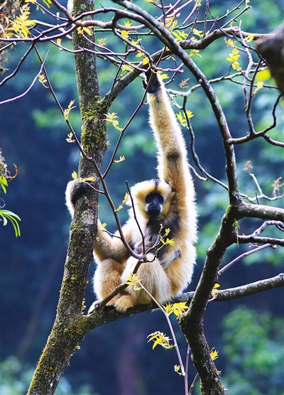 目前,随着保护力度的加大,整个无量山国家级自然保护区内已有87群500余只西黑冠长臂猿。每天早上太阳出来,西黑冠长臂猿悠扬的啼鸣都会在无量山的原始森林间回荡。 新华社 发