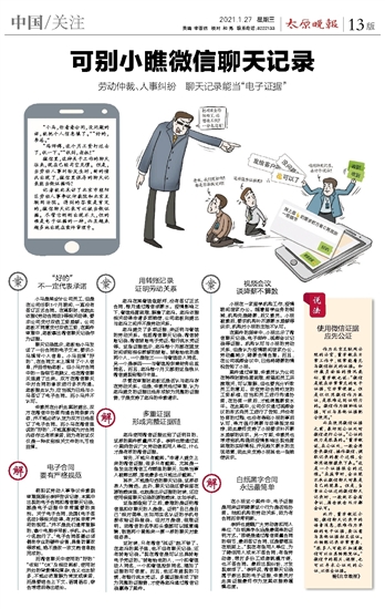 ~~~劳动仲裁、人事纠纷 聊天记录能当“电子证据”